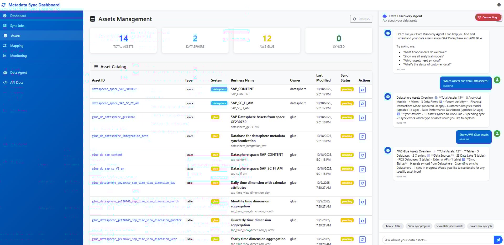Ailien is not a Metadata Aggregator Platform, such as Collibra, Atlan or Alation. Ailien Platform is a Metadata orchestration leaving SAP and AWS keep its Data Catalogs and Data Governance capabilities, while maintaining a centralized synchronization of both platforms.